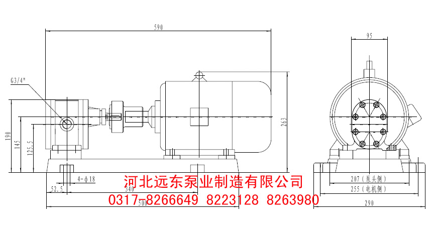 2CY1.08齒輪泵流(liu)量1.08m3/h,配用電機1.5KW-4,可排(pai)出壓力0.6Mpa或者2.5Mpa,吸入(ru)真空高度3米,口👈徑(jing)G3/4",效率58%. 該泵安裝尺(chi)寸圖: